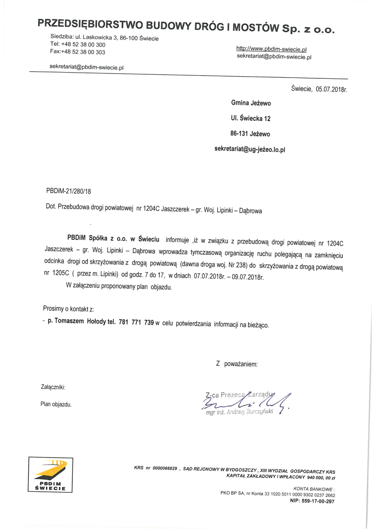 Wprowadzenia tymczasowej organizacji ruchu na drodze 1204C
