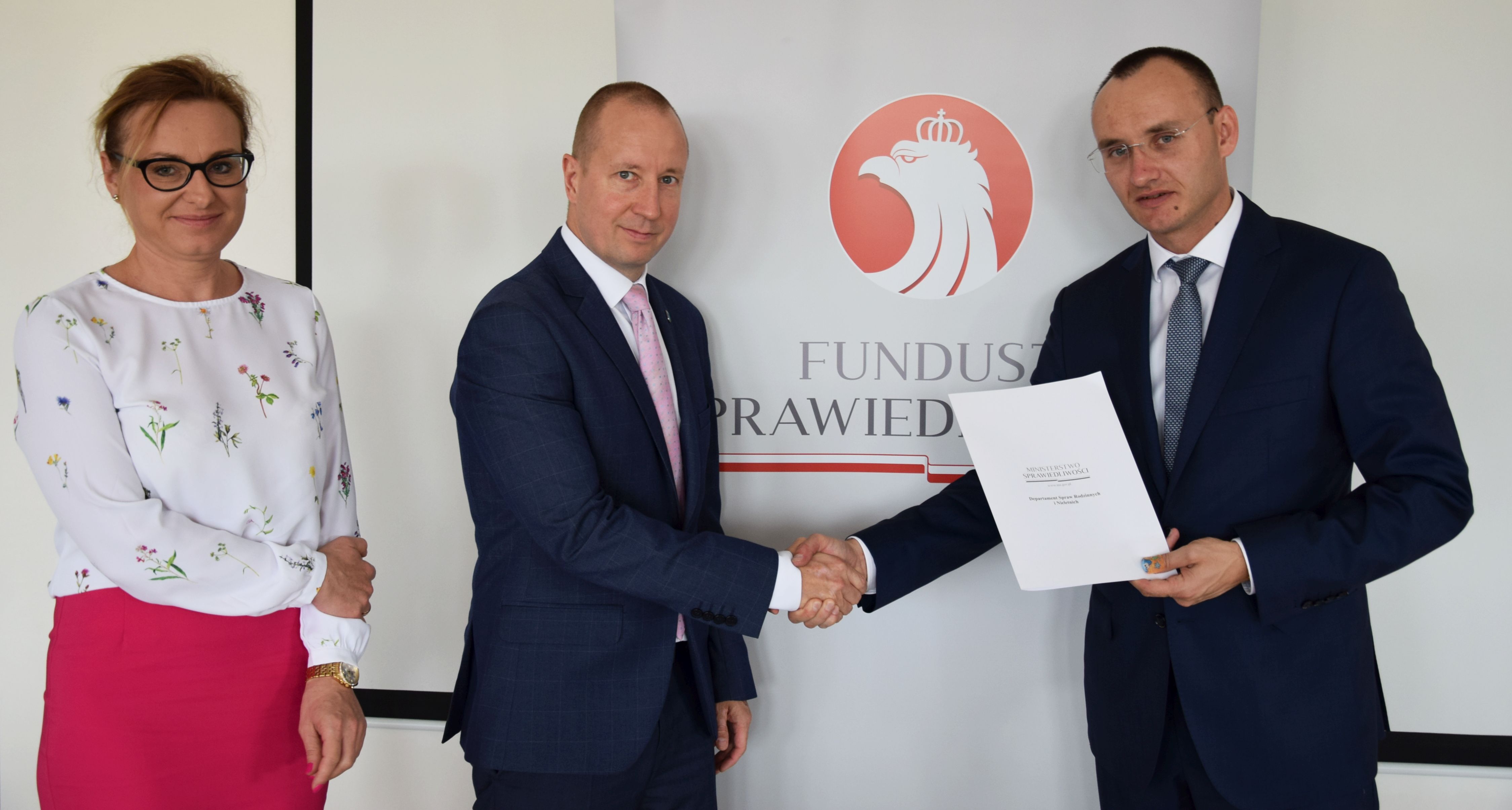 W ubiegłym tygodniu w siedzibie Ośrodka Szkolenia Komendy Wojewódzkiej Państwowej Straży Pożarnej w Toruniu, umowę podpisali: Wójt Maciej Rakowicz przy kontrasygnacie Skarbnika Gminy Pani Kamilli Prabuckiej oraz Dyrektor Departamentu Spraw Rodzinnych i Nieletnich Ministerstwa Sprawiedliwości Pan Mikołaj Pawlak.