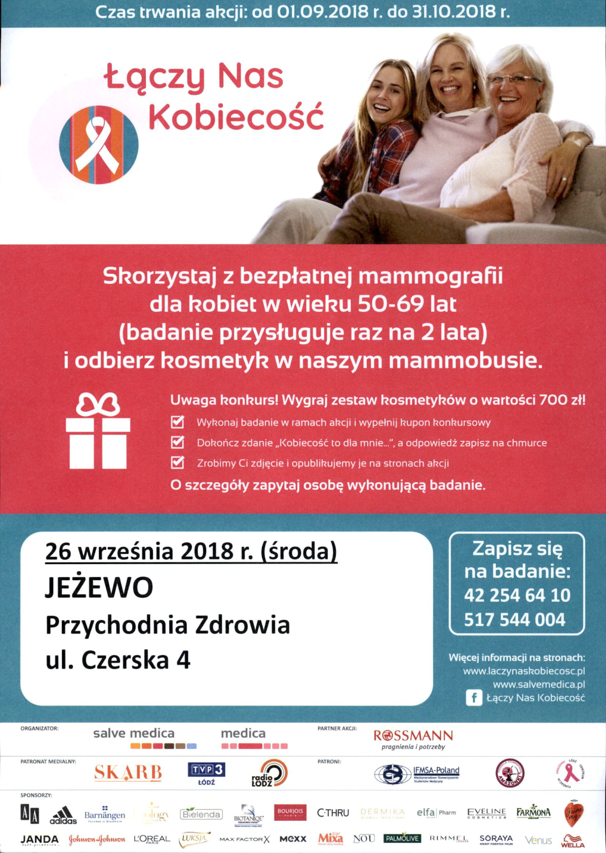 „Łączy Nas Kobiecość" to 7 edycja ogólnopolskiej akcji profilaktyki raka piersi. Weź udział w akcji i wykonaj badanie mammograficzne, a otrzymasz prezent w postaci kosmetyku z oferty drogerii Rossmann.