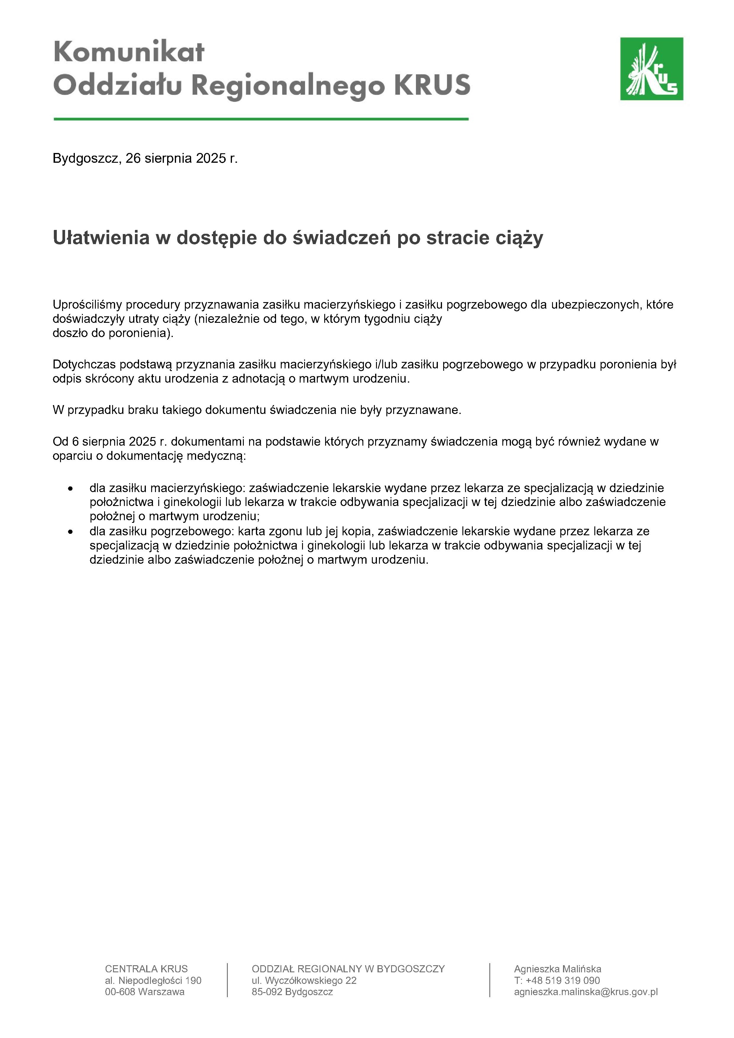 Komunikat KRUS w sprawie ułatwienia w dostępie do świadczeń po stracie ciąży