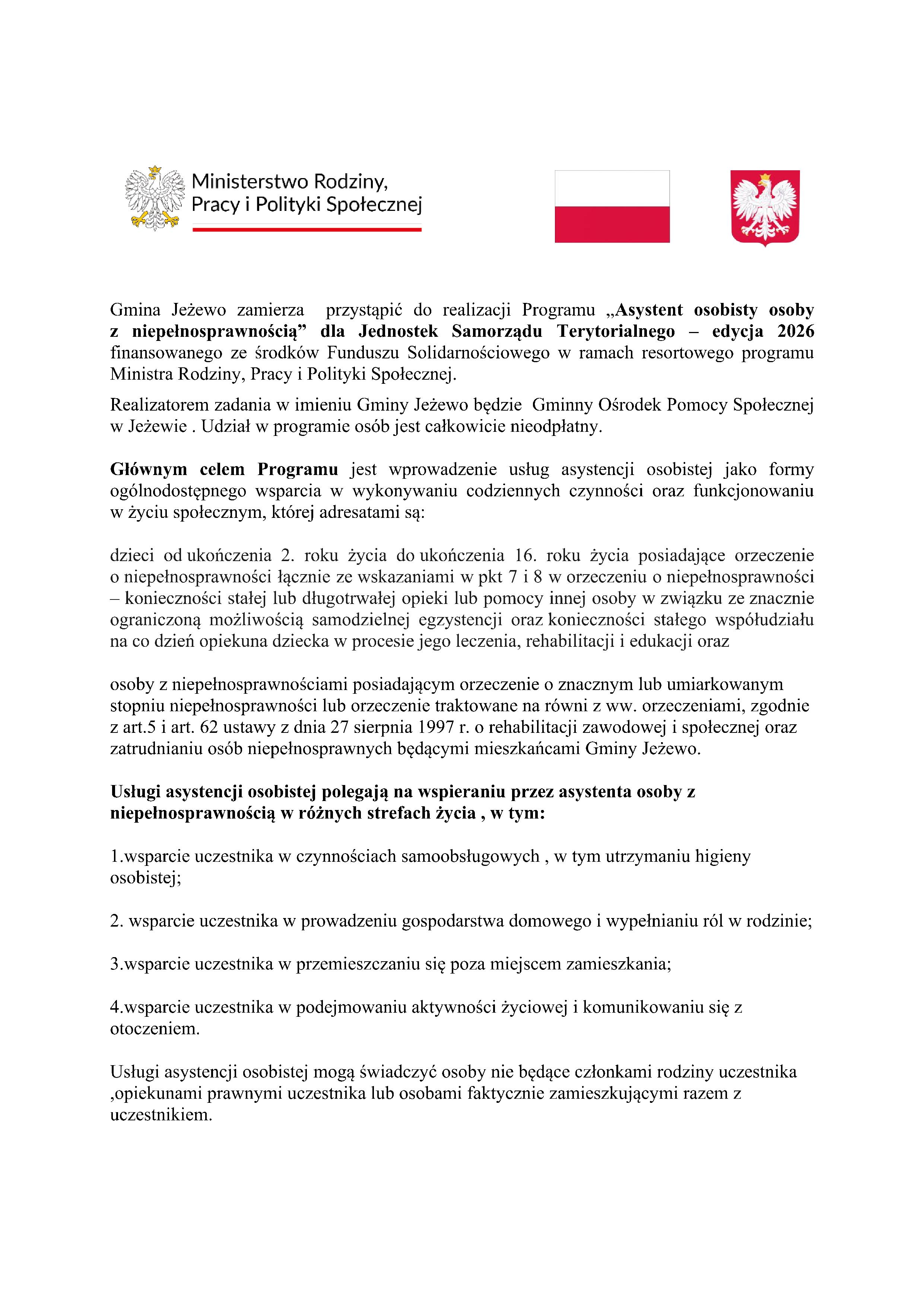 Informacja o realizacji Programu Asystent Osobisty Osoby z Niepełnosprawnością