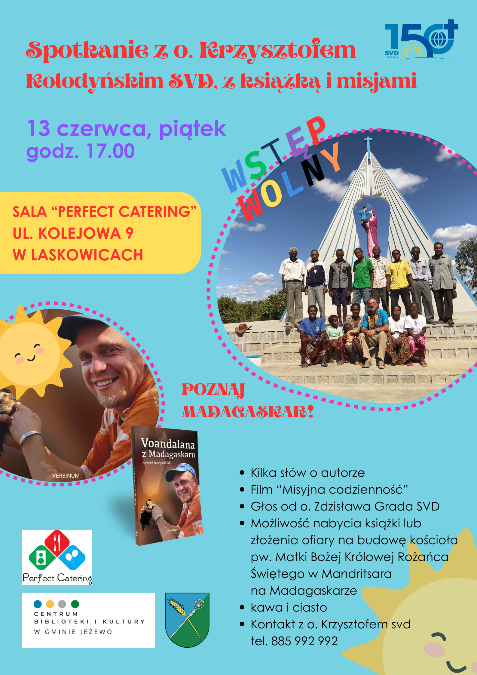Już 13 czerwca (piątek) o godz. 17:00 zapraszamy do sali Perfect Catering (ul. Kolejowa 9, Laskowice) na wyjątkowe spotkanie z o. Krzysztofem Kołodyńskim SVD, wicerektorem Domu Misyjnego Ojców Werbistów w Laskowicach.
