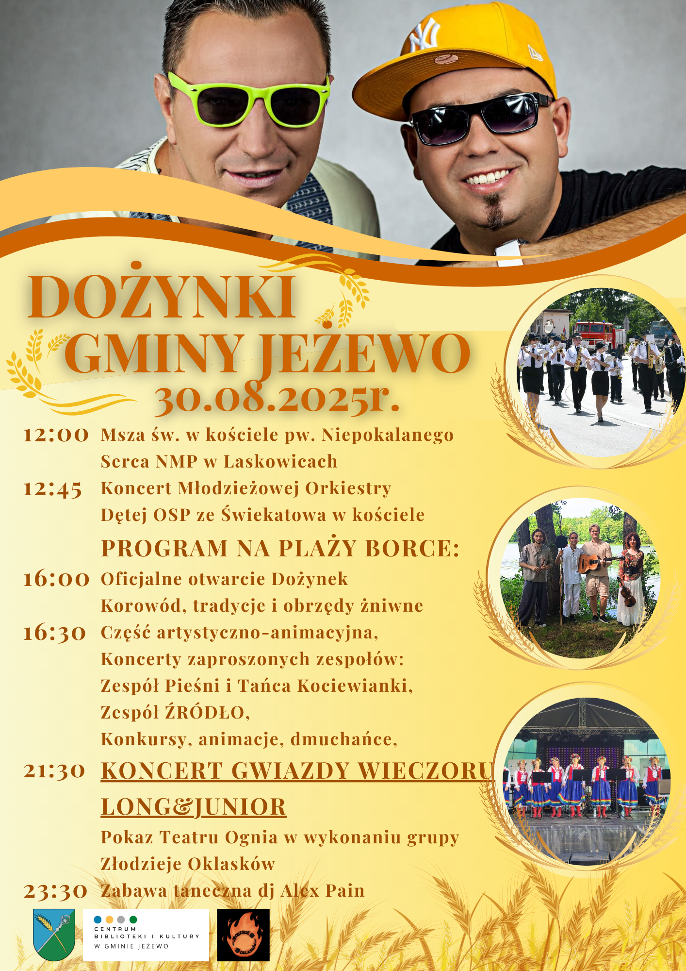Centrum Biblioteki i Kultury w Gminie Jeżewo oraz Gmina Jeżewo zapraszają na Dożynki 2025.