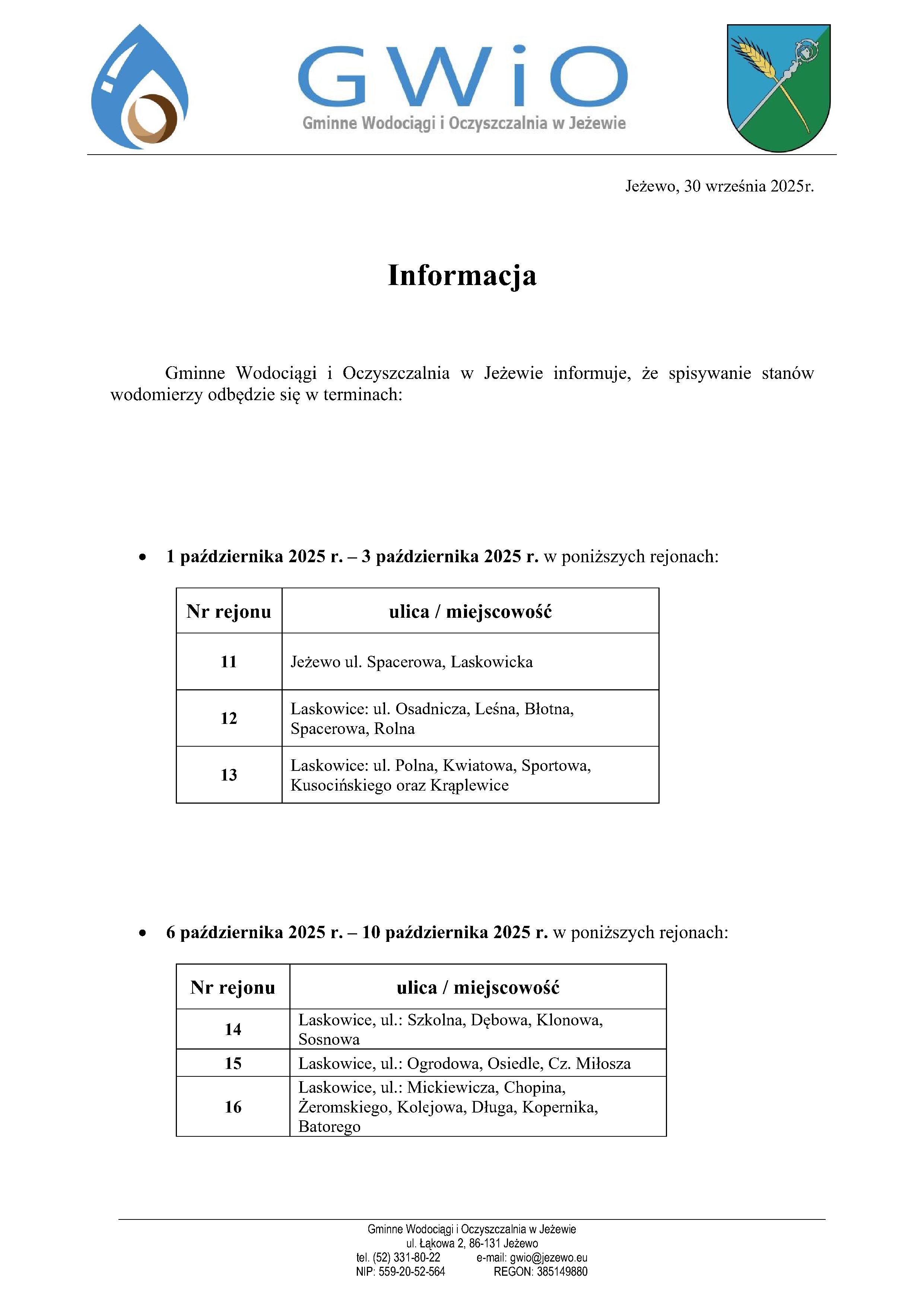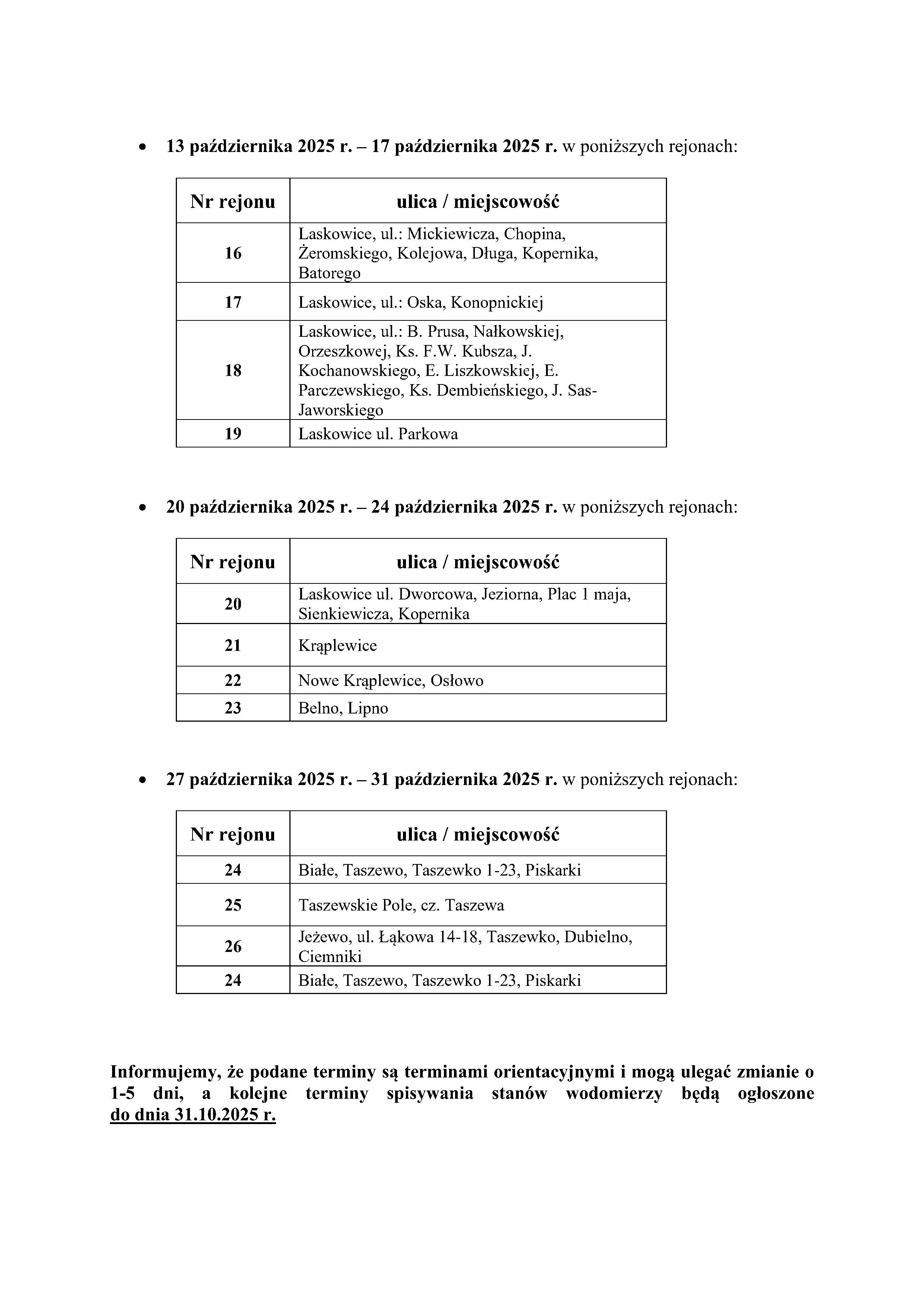 Terminy spisywania wodomierzy 30.09.2025
