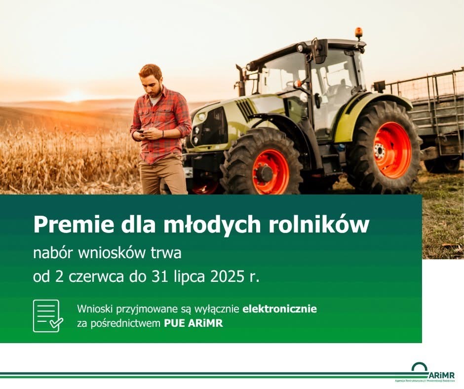 Więcej informacji o naborze - https://www.gov.pl/web/arimr/premie-dla-mlodych-rolnikow---nabor-wnioskow-od-2-czerwca-do-31-lipca-2025-r