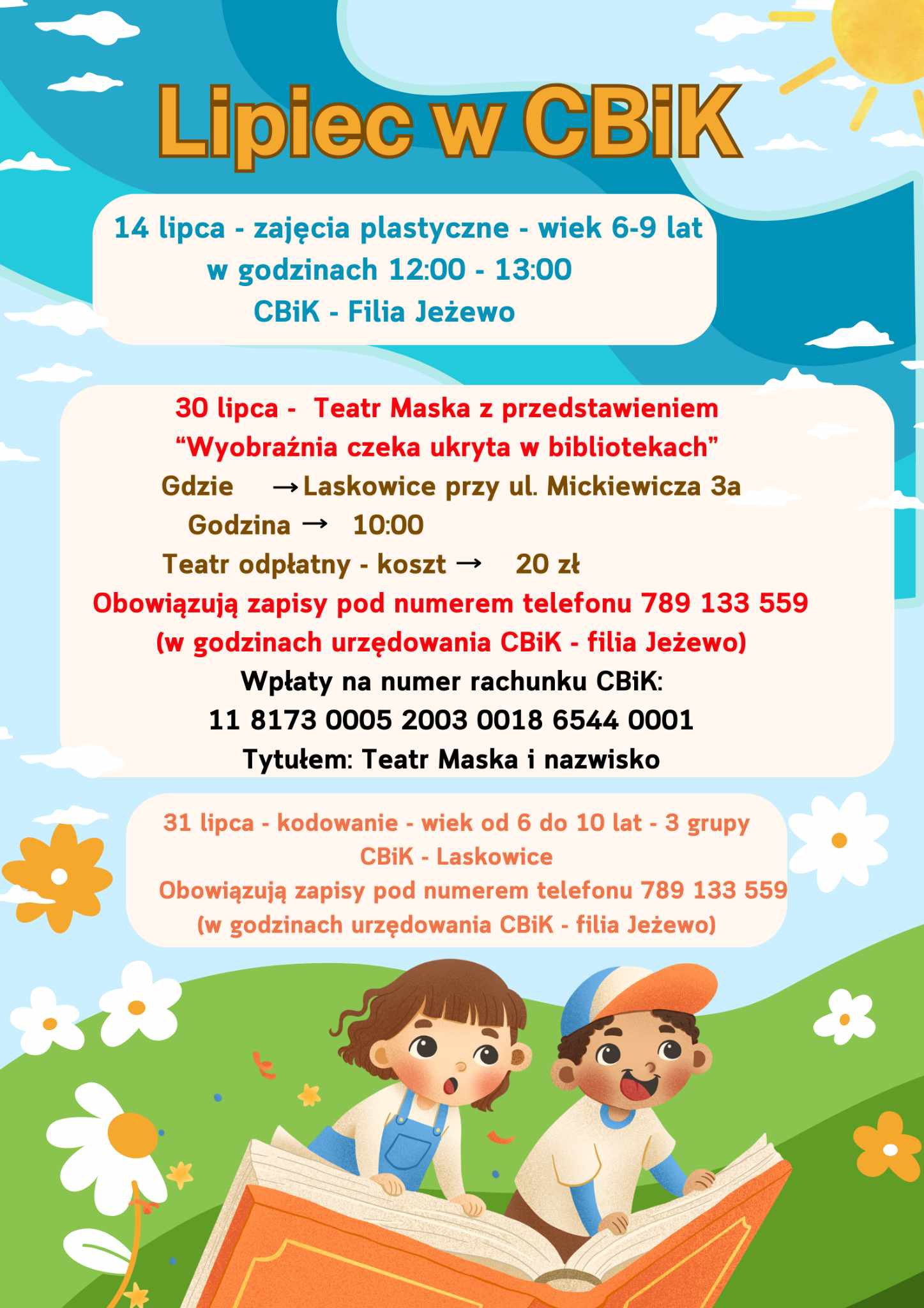 Centrum Biblioteki i Kultury w Gminie Jeżewo zaprasza na Lipiec w CBiK