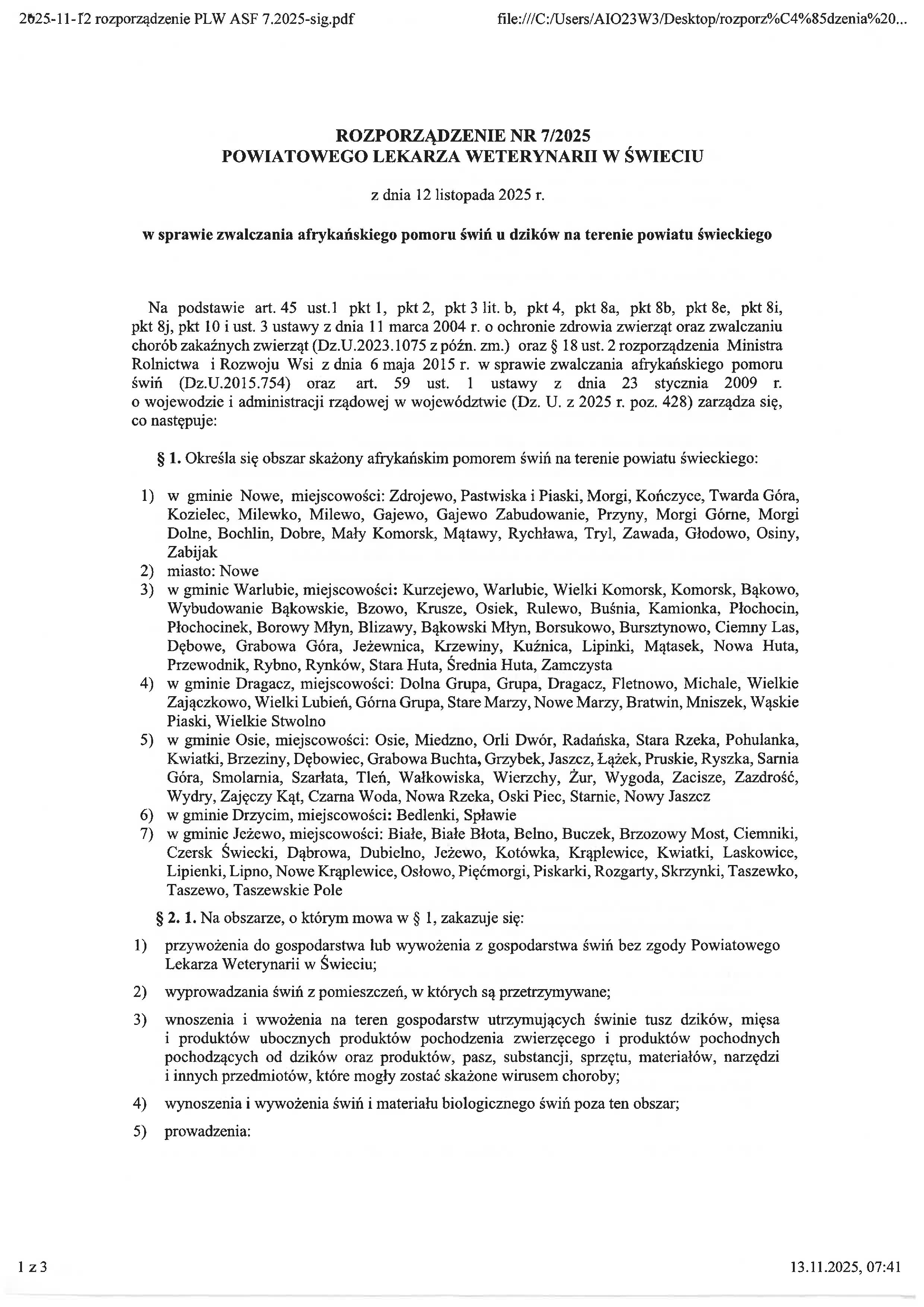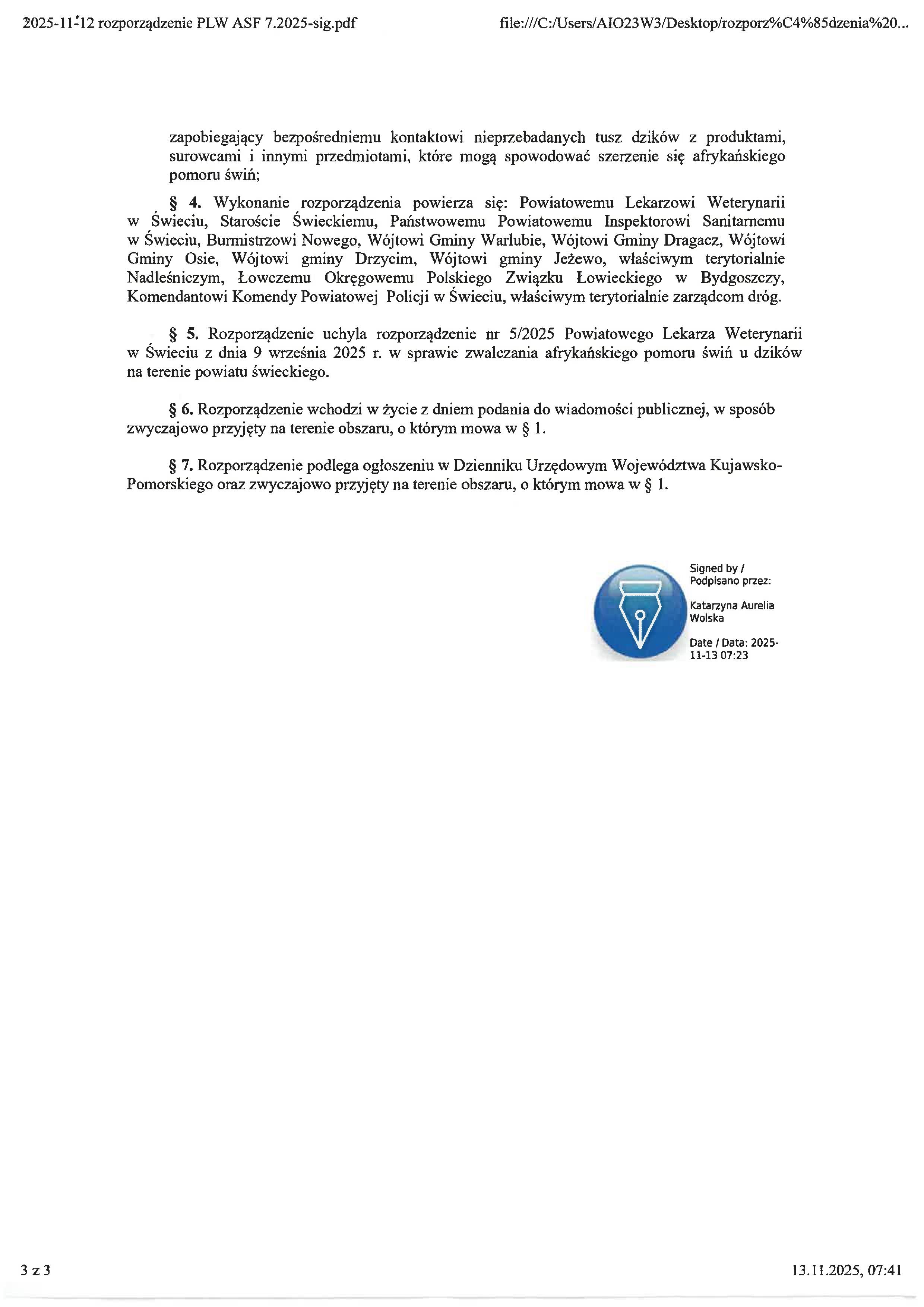 Informacja od Powiatowego Lekarza Weterynarii o ASF