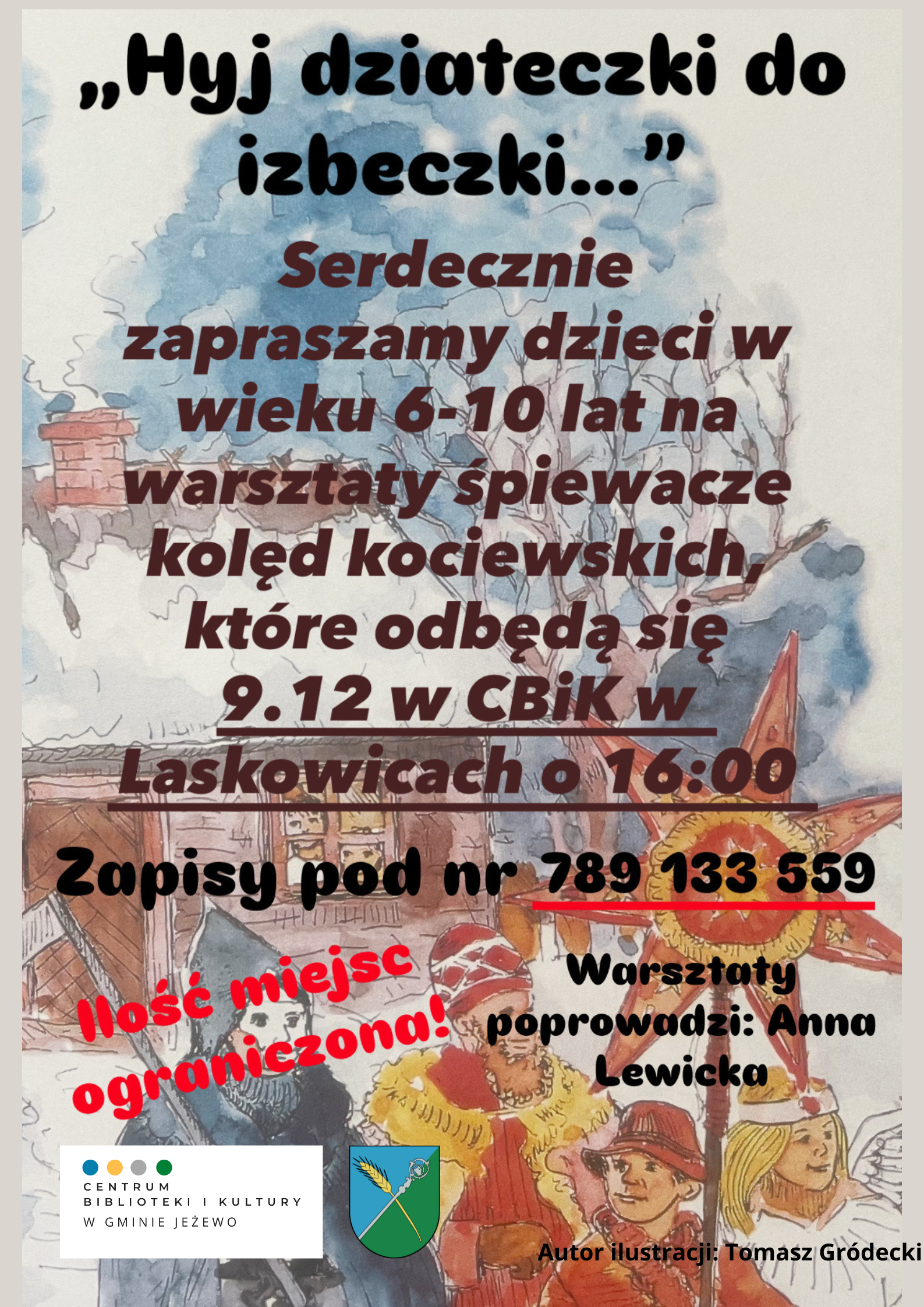 Serdecznie zapraszamy dzieci w wieku 6–10 lat na wyjątkowe, zimowo-świąteczne warsztaty śpiewacze kolęd kociewskich, które poprowadzi Anna Lewicka – pasjonatka muzyki ludowej i animatorka kultury.