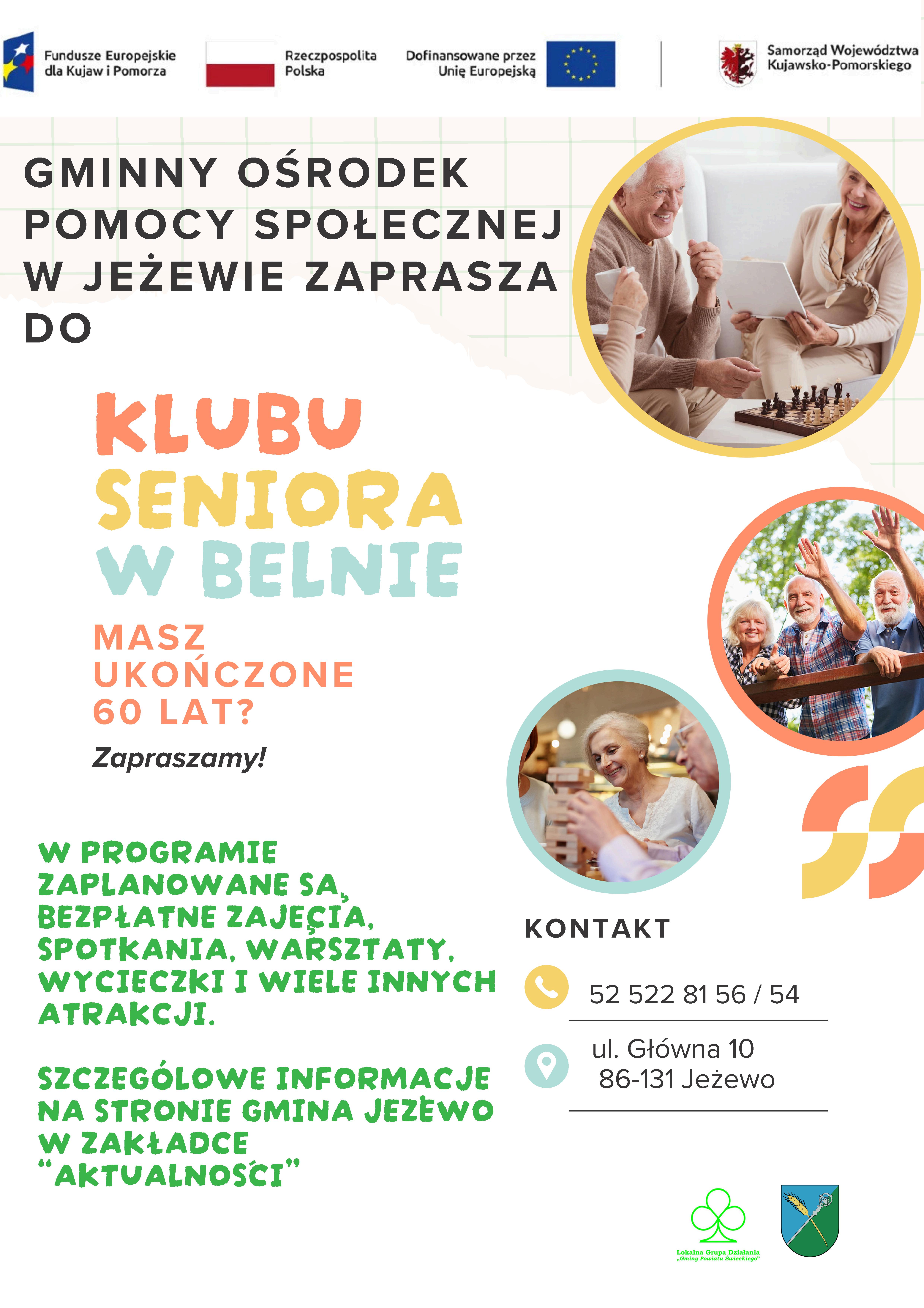 Gminny Ośrodek Pomocy Społecznej w Jeżewie informuje o rekrutacji do klubów w Belnie i Taszewie